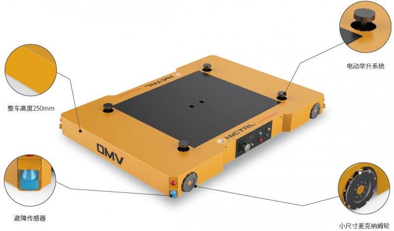 OMV潛伏背負式機器人整車采用低結構設計、高度僅為250mm,利用麥克納姆輪實現零回轉半徑、側移、全方位無死角任意漂移??煞奖愕臐撊敫黝惞ぜ斜P下。穿行于托架之間、在狹小空間內全方位無死角任意漂移。通過加裝電動舉升系統,即可實現整體搬運各種工裝及部件。實現對接、裝配等復雜工作。