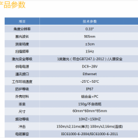 10米激光安全防護(hù);激光防護(hù)等級(jí)1級(jí);大視場(chǎng)、精確測(cè)量;工作溫度-25~50℃;防護(hù)等級(jí)IP67。電話/微信15152255397
