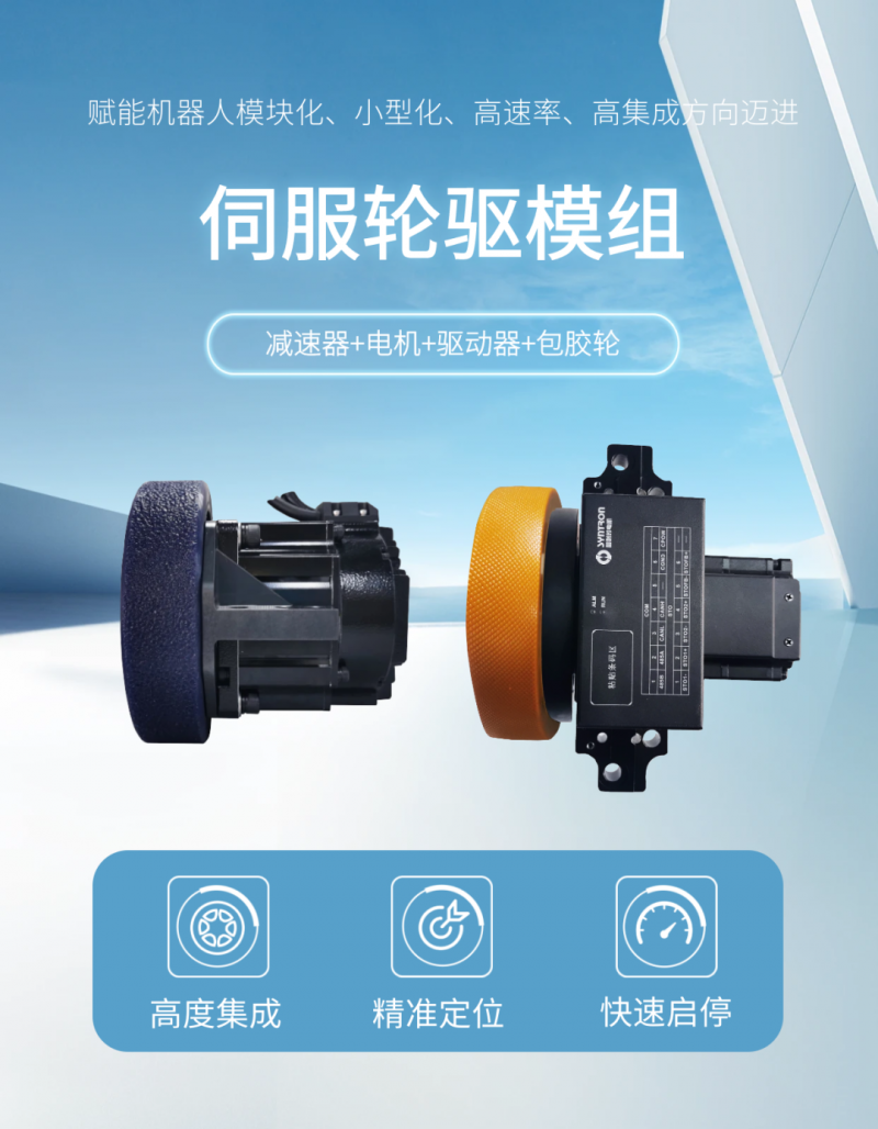 伺服輪驅(qū)模組各模塊可靈活定制,根據(jù)不同用戶的實際需求,電機功率以及減速比可以靈活調(diào)整,為客戶提供了高度集成、易維護、性價比高的運動控制解決方案。