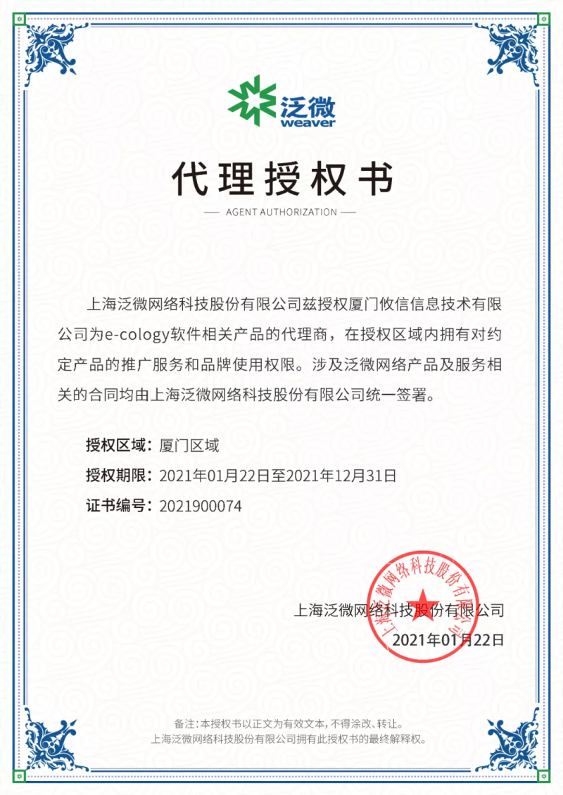 | 發(fā)證機(jī)構(gòu): | 上海泛微科技股份有限公司 | 發(fā)證時(shí)間 : | 2021-01-22 |