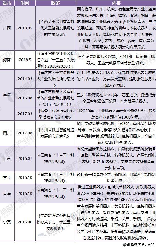 截至2018年31省市機器人政策匯總及解讀