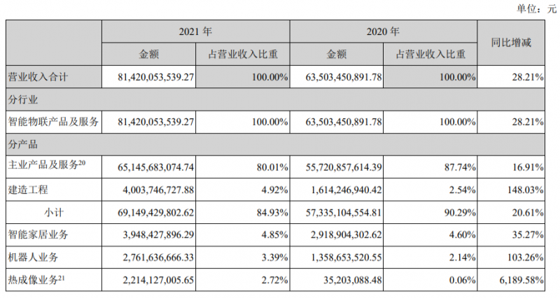 4月15日晚,海康威視(002415)公布2021年年度報(bào)告,全年實(shí)現(xiàn)營(yíng)業(yè)總收入814.20億元,同比增長(zhǎng)28.21%;實(shí)現(xiàn)凈利潤(rùn)168.00億元,同比增長(zhǎng)25.51%。