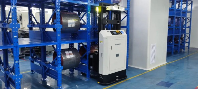 據(jù)了解,在涂布分切的前段卷料環(huán)節(jié),又包括上設備與上緩存庫兩個方面。電池生產(chǎn)節(jié)拍緊湊,設備對接精度高,創(chuàng)智針對這個環(huán)節(jié)深度定制研發(fā)了舉升式與叉臂式兩款AGV產(chǎn)品。叉臂式AGV相當于堆高叉車的懸臂,能夠?qū)崿F(xiàn)上設備及緩存庫的高精度全自動對接。
