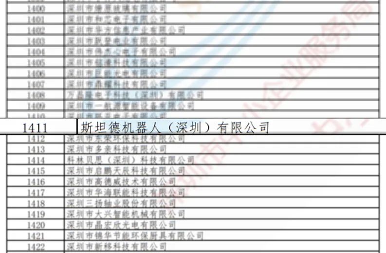 斯坦德機器人上榜2021年度深圳市“專精特新”中小企業名單