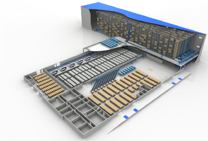 含有5臺高22米的堆垛機的ASRS存儲系統,共10,080個托盤貨位