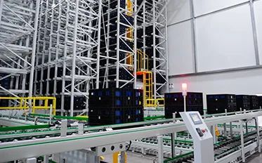 50℃高溫庫由4臺堆垛機完成烘烤后的鋰電池存取,共4,160個托盤貨位;