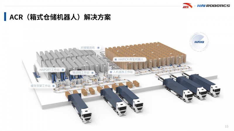 基于上述物流挑戰,安踏決定引入海柔創新ACR(箱式倉儲機器人)解決方案,對安踏晉江倉庫和成都倉庫進行智慧化升級。在安踏成都倉庫內,海柔創新為安踏集團物流采用了高位貨架的存儲方式,提供230萬件庫容量的高密度存儲。部署HAIPICK® A42N紙箱揀選機器人和HAIPORT自動裝卸機智能對接的箱式倉儲機器人解決方案,提高搬運、揀選等作業效率。