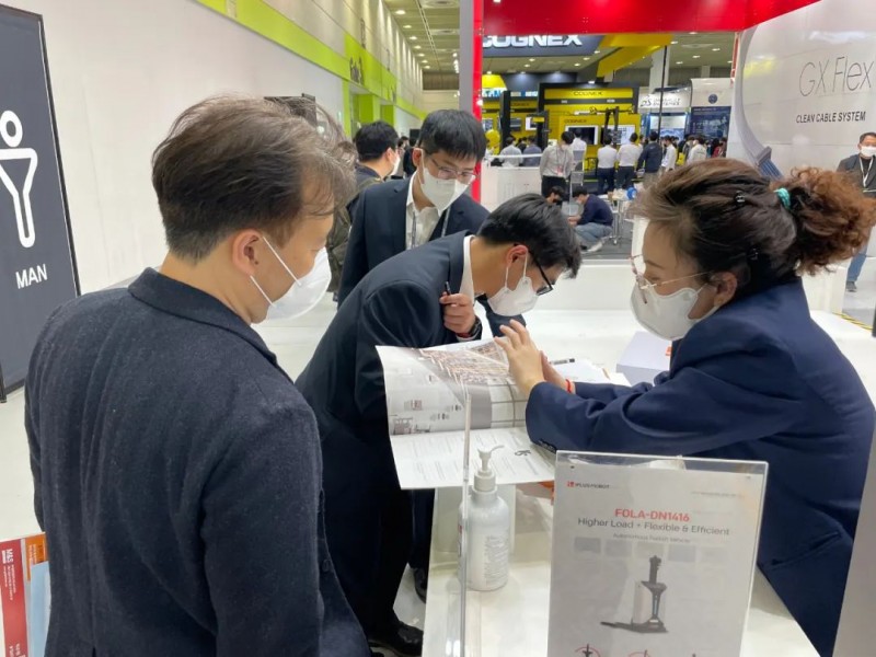 展會現場,采用迦智自研融合導航技術的EMMA移動機器人車隊,對接不同料架,在多機器人調度管理系統的統一管控下,結合智能的控制算法,準確、高效地完成物料的柔性周轉。