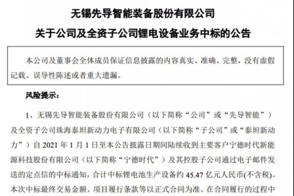 先導(dǎo)智能:今年累計中標(biāo)寧德時代鋰電設(shè)備約45億元