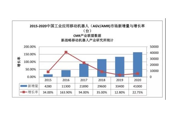 2020年中國市場AGV/AMR新增量41000臺,市場規(guī)模76.8億元