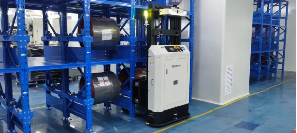 近兩年,藍芯科技瞄準鋰電、光伏領域,大力開拓新能源行業。當前,藍芯科技面向新能源行業的產品主要有無人叉車、智能搬運機器人、涂布機上下料機器人、分條機上下料機器人等,已得到廣泛應用。