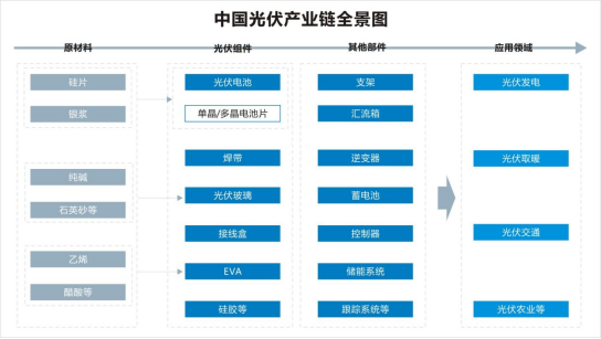 在2021年度近7500億的光伏投資規(guī)模中,單個(gè)投資規(guī)模在億元以上的光伏項(xiàng)目已超130個(gè),10億元以上的項(xiàng)目近100個(gè),100億元以上的項(xiàng)目約有25個(gè)。其中全產(chǎn)業(yè)鏈一體化項(xiàng)目投資規(guī)模近2000億,每個(gè)項(xiàng)目投資手筆動(dòng)不動(dòng)就是幾百億,電池和組件環(huán)節(jié)的投資擴(kuò)張有過(guò)之而不及,億元以上的項(xiàng)目超過(guò)60個(gè),約7個(gè)項(xiàng)目投資預(yù)算在100億元以上。2022上半年,光伏產(chǎn)能投資超過(guò)了6000億,特別是龍頭企業(yè)動(dòng)輒百億的投資(公告)頻頻出現(xiàn),跨界者持續(xù)涌入,產(chǎn)能投資還在提速。光伏產(chǎn)業(yè)的擴(kuò)產(chǎn)風(fēng)潮給設(shè)備廠商帶來(lái)了巨大的機(jī)遇,光伏產(chǎn)業(yè)鏈中,上游為原材料,主要包括硅片、銀漿、純堿、石英砂等;中游為光伏電池板及光伏組件生產(chǎn);下游為光伏的應(yīng)用領(lǐng)域,光伏主要用來(lái)發(fā)電,還可以代替燃料用來(lái)取暖等。