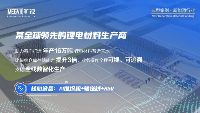 曠視看到,無論是鋰電原材料、動(dòng)力電池還是光伏等新能源企業(yè)的生產(chǎn)設(shè)備的自動(dòng)化改造已經(jīng)達(dá)到較高水平,企業(yè)通過工藝管理、工藝改進(jìn)和精益制造實(shí)現(xiàn)了很好的效益提升;目前正在加緊部署物流機(jī)器人和智能立庫系統(tǒng),對(duì)物流環(huán)節(jié)數(shù)智化升級(jí),以進(jìn)一步提升工藝管理和交付能力,實(shí)現(xiàn)降本增效。