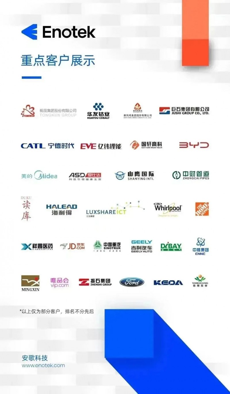 除此之外,安歌科技至今已為桐昆股份、中國巨石、中國重汽、國軒高科、比亞迪等化纖、玻纖、新能源、新材料、汽車零配件、造紙、電子電器、食品飲料等打造了100+案例,收獲了來自各領域頭部企業的認可。