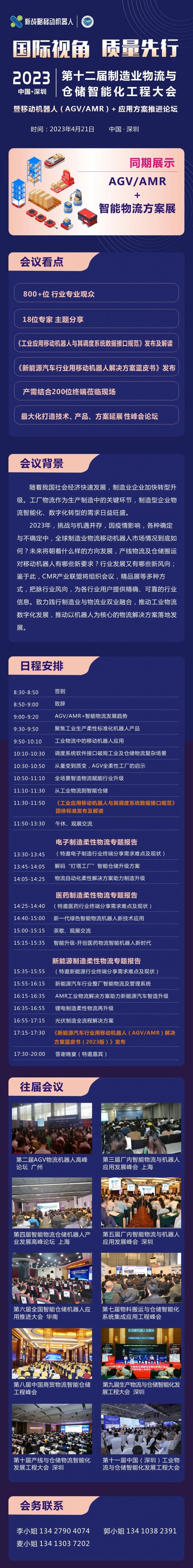 核心提示:2023第十二屆制造業物流與倉儲智能化工程大會暨移動機器人(AGV/AMR)應用方案推進論壇