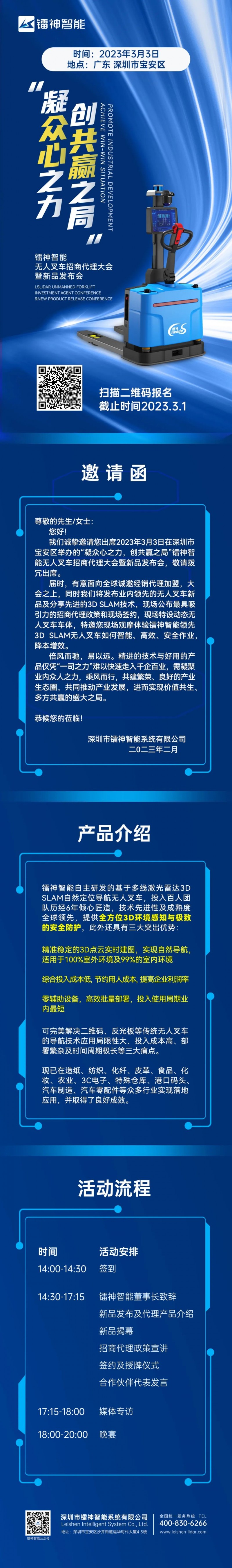 鐳神智能無人叉車招商代理大會暨新品發布會即將開幕!