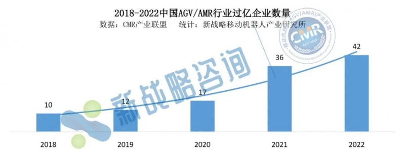 2018-2022中國AGV/AMR行業過億企業數量