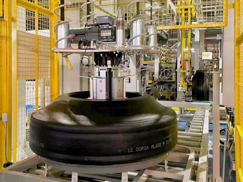 UQI優(yōu)奇EMS自行小車的軌道布置在高空中,避開(kāi)了擁擠的地面空間,以機(jī)械手從各個(gè)成型機(jī)收取胎胚。其最高運(yùn)行速度高達(dá)200米/分鐘,可充分滿足大面積廠房的快速輸送需求。