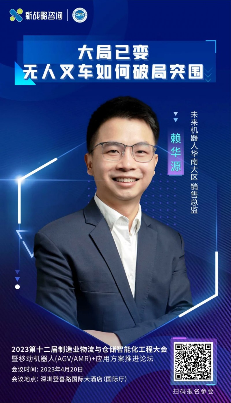 4月20日,在由新戰略移動機器人以及新戰略咨詢聯合主辦的“2023第十二屆制造業物流與倉儲智能化工程大會“上,未來機器人華南大區銷售總監賴華源將帶來“大局已變,無人叉車如何破局突圍”主題演講,敬請關注!
