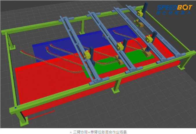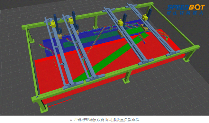 2)多臂共軸無碰運動規劃,實現多臂桁架機器人在共享工作空間內高速無碰、靈敏作業,無需人為干涉。