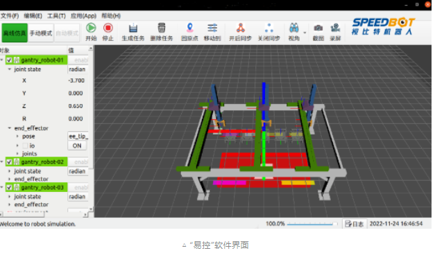 在使用SpeedTruss智能桁架控制器時,用戶只需在軟件中調用任務指令接口即可實現相應功能,無需進行額外的開發工作,輕松實現多臂桁架機器人的柔性運動控制。