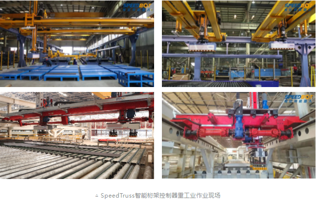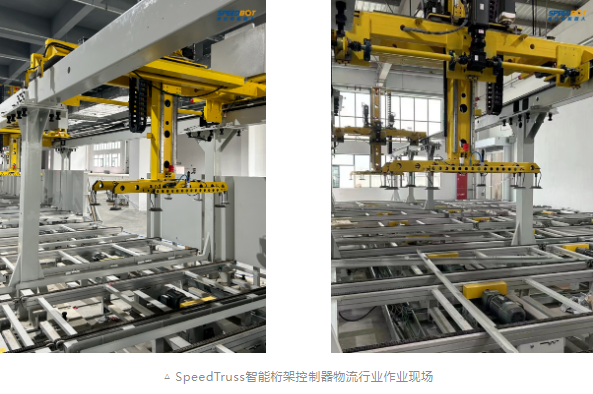 在重工制造業鋼板切割件分揀場景,來料零件重且規格多樣、作業空間跨距大、生產環境復雜,難點在于桁架高速重載運動以及多臂無碰協同作業的控制。國內多家重工龍頭企業生產線采用SpeedTruss智能桁架控制器進行多臂桁架的智能調度與協同作業,實時規劃最優運動軌跡,主動避障、多機無碰、高效作業,輕松完成了上萬種鋼板切割件的柔性揀選。