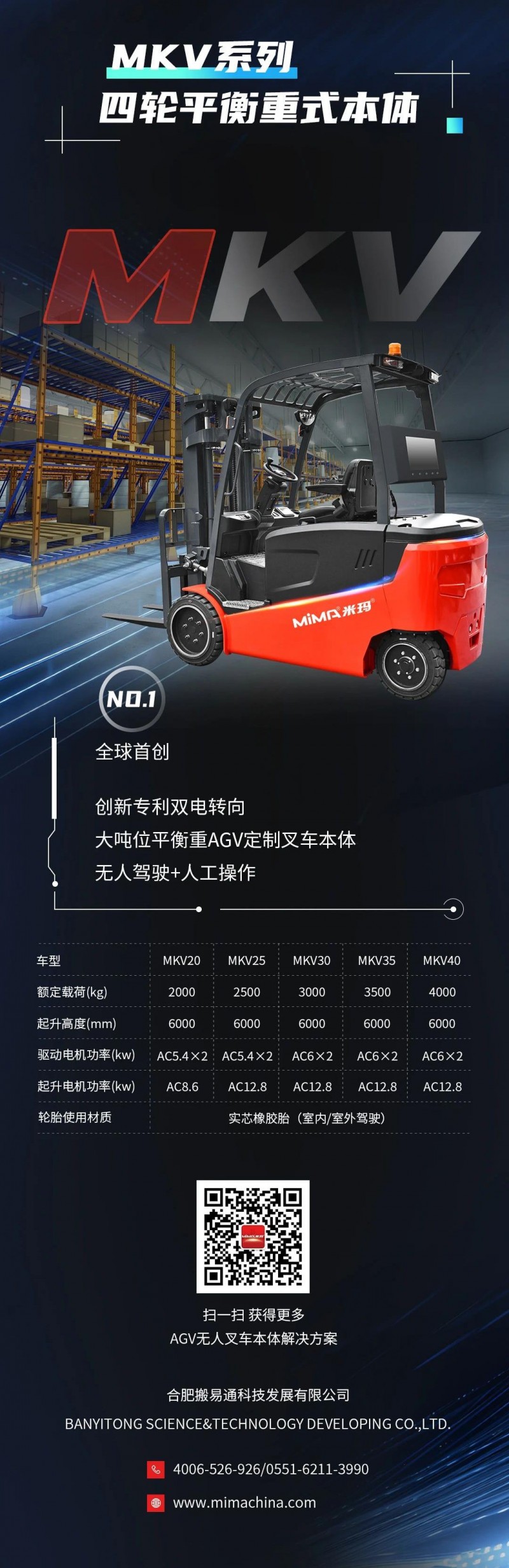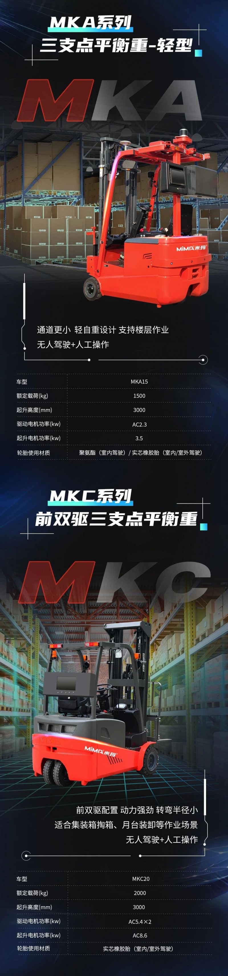 MiMA全系列平衡重叉車AGV本體助力智慧倉儲新未來!——適用室內外多場景無人化搬運裝卸!