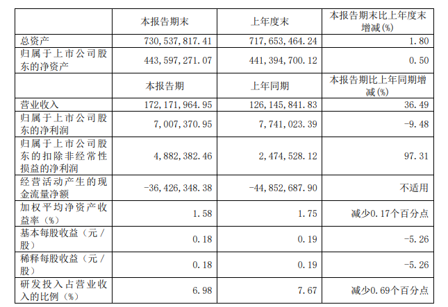 瑞晟智能發布2023年半年度報告。半年報顯示,公司實現營業收入1.72億元,同比增長36.49%;歸屬于上市公司股東的扣除非經常性損益的凈利潤488.24萬元,同比增長97.31%。