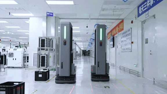 針對手機制造復雜、精細的多工序生產,二期部署CTU料箱機器人解決方案,可適應不同尺寸、不同材質料箱的高密存儲和精準配送,實現倉庫到SMT產線的全流程物料管控,AMR配合提升機,實現SMT加工、點膠、組裝、老化、測試、鍍膜、包裝等典型的手機生產流程的跨樓層全自動搬運。