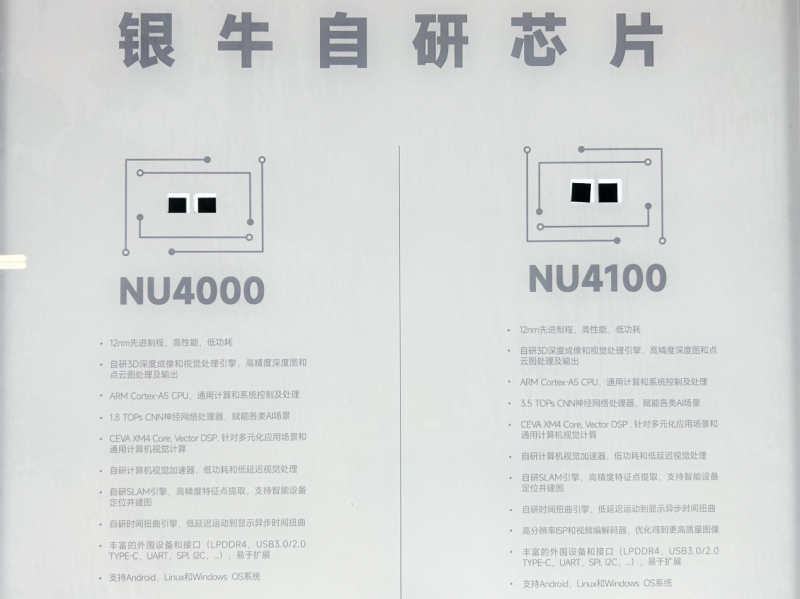 白逸介紹說,NU4000芯片的特點在于將雙目立體視覺技術的算法芯片化,同時也集成了全球領先的3D感知處理硬件單元、AI與SLAM硬件引擎,能有效分擔系統算力、降低系統功耗和成本。