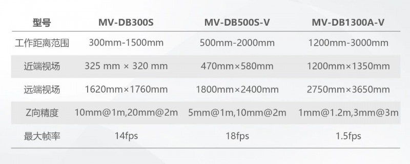DB1300A-V相機內置高精度深度融合算法,精度可達毫米級 ,超大視場景深覆蓋,規則物體測量精度:±5mm;不規則物體測量精度:±10mm;