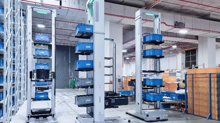 該項目引入海康機器人15臺伸縮型CTU,實現最高8m的取放貨高度,在有限的面積下,伸縮型CTU能充分利用立體空間,在3,000㎡的倉庫面積下部署了35,000個儲位,幫助倉庫實現立體存儲,空間利用最大化。