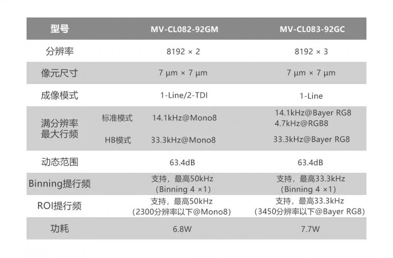 MV-CL082-92GM采用2線7μm COMS Sensor,保證高感光的基礎上可支持2-TDI成像提亮,搭配高信噪比模式,展現更優圖像品質。