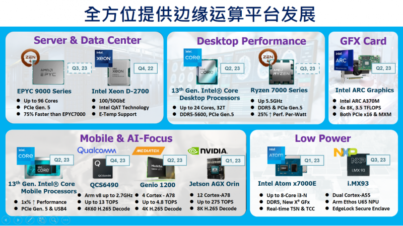研華嵌入式物聯網平臺事業群提供全系嵌入式計算機板卡、智能系統、工業存儲與顯示、軟件服務經銷以及客制化設計服務并專注垂直產業發展。為迎接物聯網、大數據與人工智能的發展,我們還提供從邊緣計算到云服務的物聯網整合解決方案,包含工業無線解決方案、邊緣智能網關、私有云服務器及DeviceOn物聯網設備綜合管理平臺、研華工業云和第三方主流云服務平臺。同時面向人工智能應用推出Edge AI模塊、推理系統及產業解決方案,專注物聯網行業深耕。(服務專線/QQ:400-001-9088)