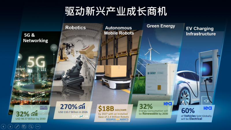 在當前的科技行業中,新興產業如5G 網通、綠色能源、機器人和電動車等正以飛速的步伐蓬勃發展。張家豪首先介紹了研華近期在全球范圍內進行的一項調查研究。這項研究涵蓋了5G網通、機器人、新能源EV充電樁、節能綠能等多個方面,旨在探尋未來科技產業的發展方向和市場需求。他特別強調,這些新興產業不僅是研華認為的未來發展趨勢,更是全球范圍內的共識。盡管不同的國家和地區對這些產業的重視度存在差異,但新能源、機器人等領域都已經得到國家的高度重視。