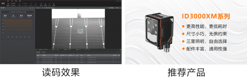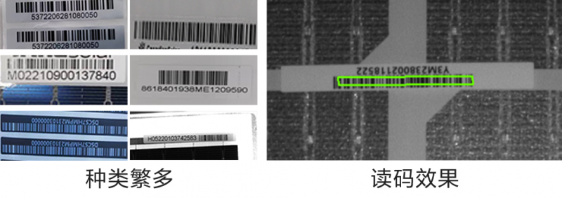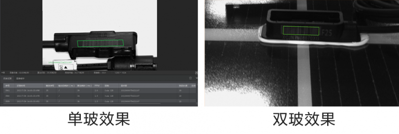需求:電池片敷設背板或背玻后,表面會貼附標簽碼用于后續工序的追溯管理,單玻組件貼在背板上,雙玻組件貼在毛玻璃上,需要在組件運轉過程中讀碼。