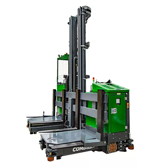 三向堆高式機器人采用先進激光SLAM導(dǎo)航技術(shù),貨叉可以側(cè)移和180°旋轉(zhuǎn),可精準定位并叉取貨物,實現(xiàn)窄巷道內(nèi)、地面到貨架、地面到地面等多種模式。