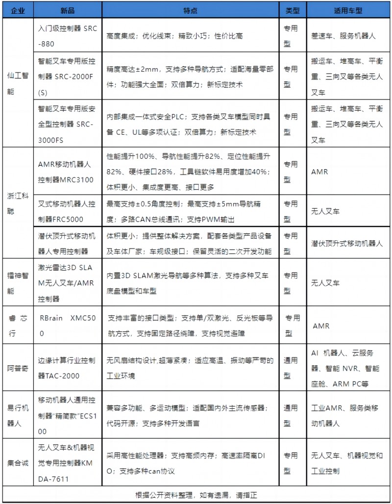 圖表:2023年移動(dòng)機(jī)器人專用控制器新品