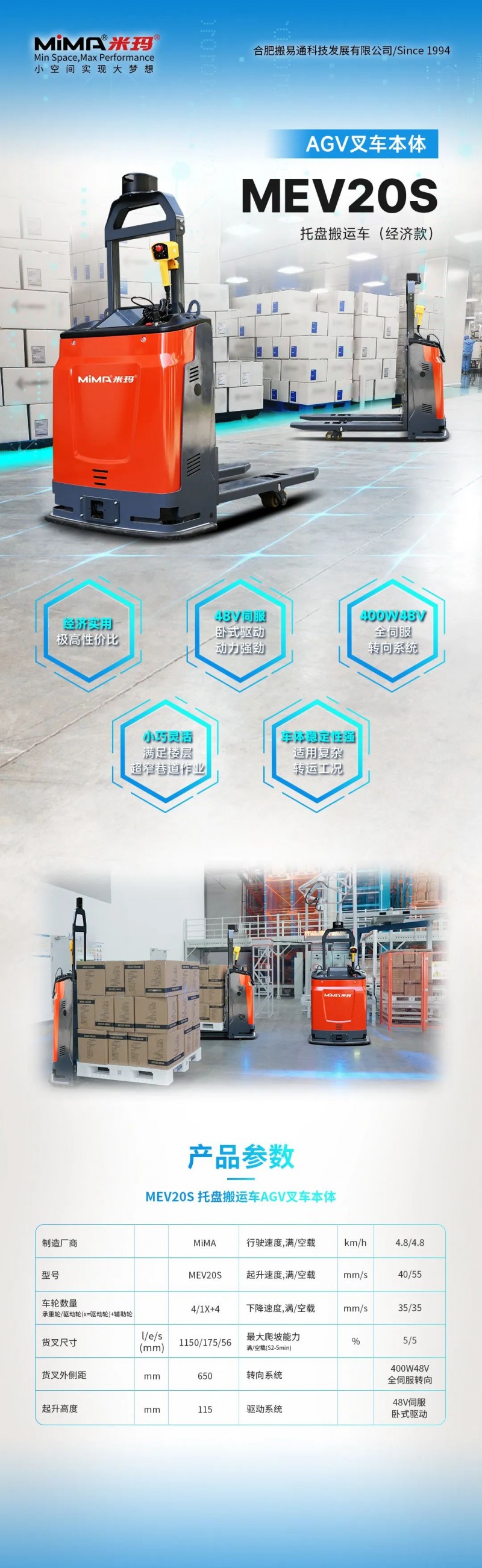 合肥搬易通(MiMA米瑪)公司總部位于安徽合肥,在全球范圍內擁有100多家經銷商和代理商,立足國內,面向全球。合肥搬易通始終以“讓人類更輕松的進行物料搬運”為企業使命,全面助力我國物流產業朝向綠色、智能、專業化方向蓬勃發展。