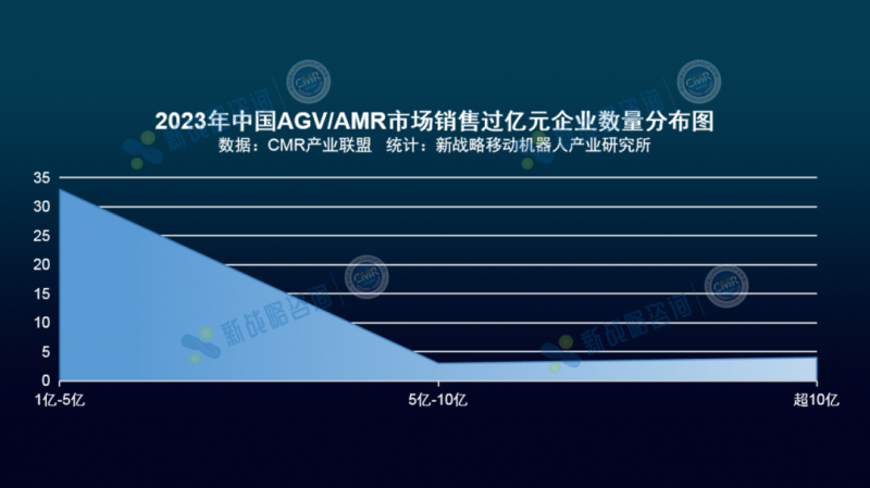 圖表:2023年中國(guó)AGV/AMR市場(chǎng)銷售過億元企業(yè)數(shù)量分布圖
