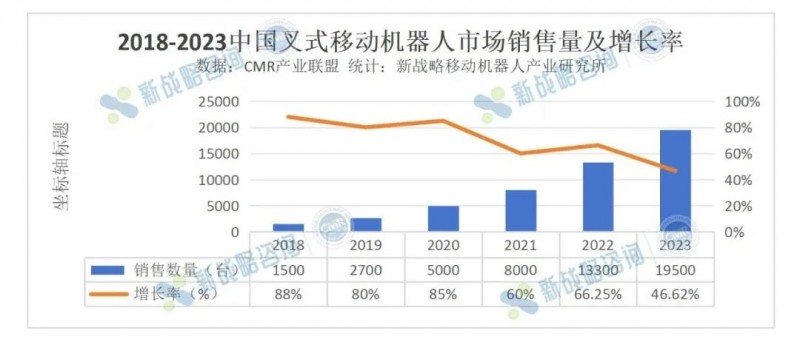 據CMR產業聯盟數據、新戰略移動機器人產業研究所統計,2023年中國叉式移動機器人銷量達19500臺,同比增長46.62%。
