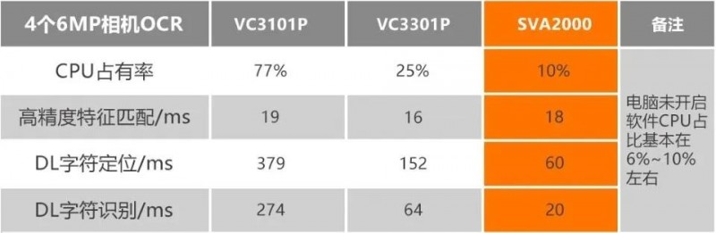 SVA2000利用硬件平臺的異構(gòu)特性對軟件架構(gòu)和算法效率進行了深度優(yōu)化,在4相機應(yīng)用場景下,它的性能可以對齊桌面級CPU和GPU,能夠滿足大部分多相機視覺應(yīng)用的節(jié)拍要求。