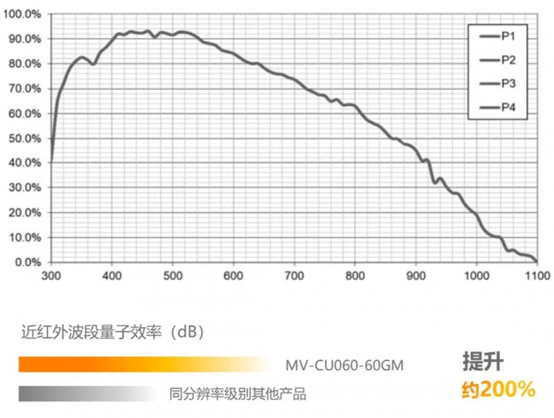 該相機近紅外波段的響應效率顯著提升,能夠在近紅外光環境下保證成像效果,在常見的近紅外應用中,如光伏、激光檢測、眼科醫療等應用中,能夠確保細節的獲取與圖像亮度效果的呈現。