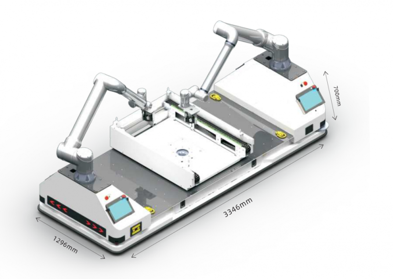 歐鎧復(fù)合機(jī)器人是基于AGV搭載多軸機(jī)械臂組成,結(jié)合ERP/MES等信息系統(tǒng)的指令,復(fù)合機(jī)器人與信息系統(tǒng)結(jié)合運(yùn)作。調(diào)度人員通過系統(tǒng),向復(fù)合型機(jī)器人下達(dá)物料運(yùn)輸、上下料的指令,車間智能化由此形成。