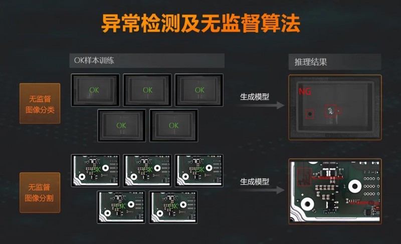 面對缺陷檢測初期樣本稀缺,導致模型學習無法穩(wěn)定收斂的挑戰(zhàn),VM4.4創(chuàng)新推出AI異常檢測類算法工具。通過集成無監(jiān)督圖像分類與無監(jiān)督圖像分割算法,用戶僅需提供少量正常樣本,就能快速準確地識別異常缺陷,大大加速模型收斂過程,顯著縮短項目落地時間。