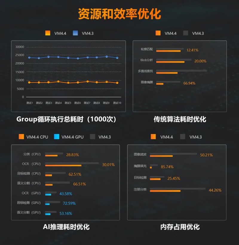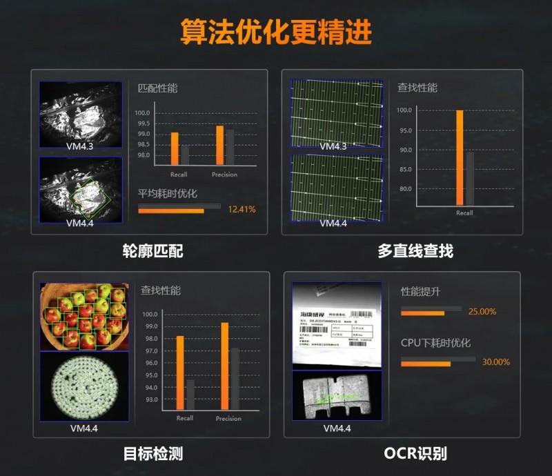 VM4.4對模板匹配、Blob、目標檢測、OCR、圖像處理、讀碼等多個算法工具進行了效率提升和性能優(yōu)化,基于海量工業(yè)場景數據,推出了通用識別模型,無需二次訓練,能直接滿足大多數工業(yè)場景的檢測需求。