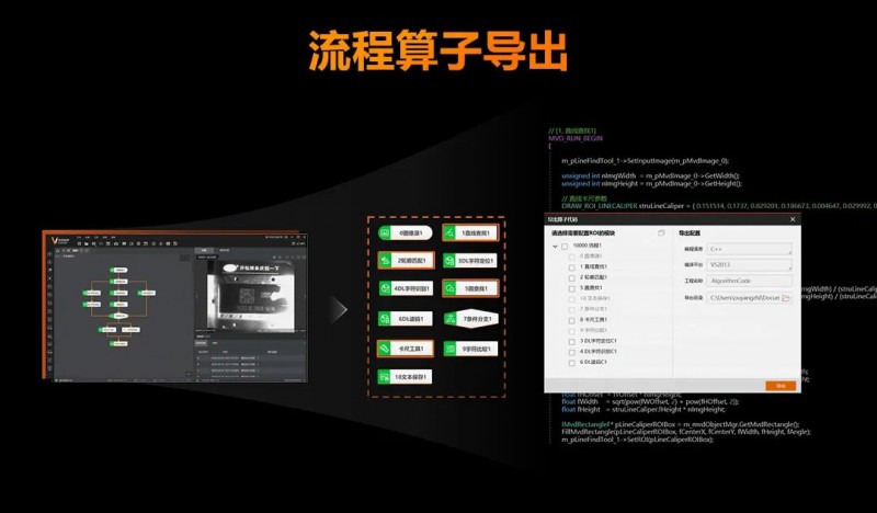 為進一步降低二次開發(fā)難度,VM4.4新增算子導出功能,開發(fā)者可以把搭建好的VM圖形化方案導出成算子接口級的調用代碼,幫助用戶更快理解VM的算子開發(fā)邏輯,同時減少編碼量。