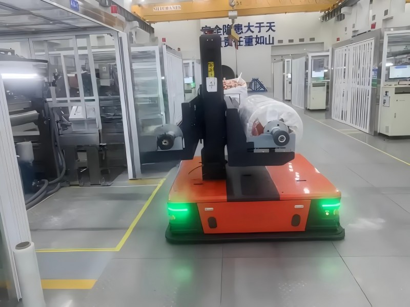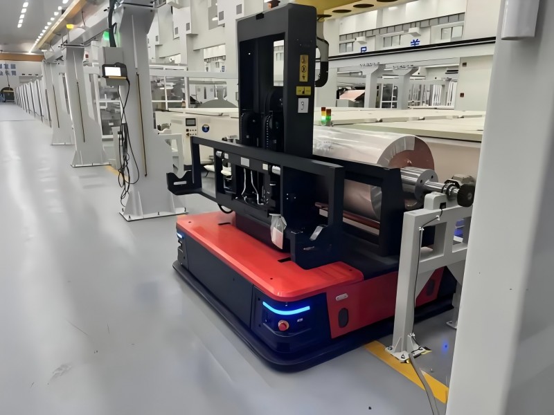 標(biāo)箔/鋰電生箔區(qū):AGV自動搬運,由AGV自動對接,完成空滿軸切換。