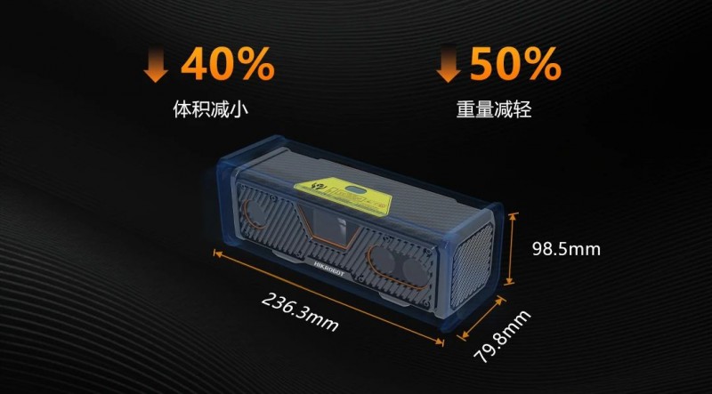 新一代激光振鏡立體相機全系列采用輕量化設計,以小視野高精度的DLS300P為例,相機的體積減小約40%,重量減輕約50%。在臂載式安裝(Eye in Hand)應用時,能夠有效減輕機械臂末端負載,提升系統可達性,滿足更廣泛的應用場景。