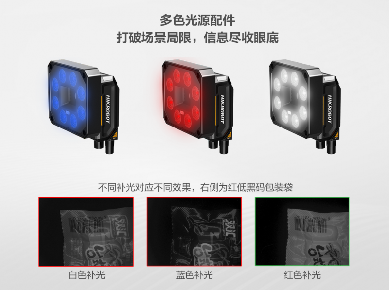除常見的鏡頭罩及多色補(bǔ)光外,還支持?jǐn)U展高亮光源、多色光源以及行業(yè)專用光源等,場(chǎng)景適應(yīng)能力更強(qiáng)。